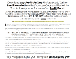 “...Download 207 Profit-Pulling Professionally Written Email Newsletters that You can Copy and Paste into Your Autoresponder for an Instant Credibility and Profit Boost!”